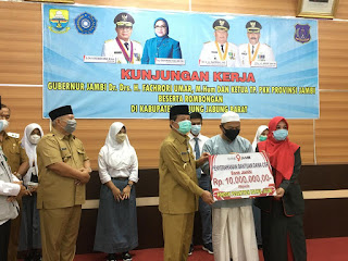 Pada kesempatan kali ini, Gubernur Jambi menyerahkan bantuan Pendidikan, dana CSR kepada Pondok Pesantren Farul Ulum yang berlokasi di Kecamatan Tebing Tinggi, Kabupaten Tanjungjabung Barat. Selain itu, Fachrori Umar juga menyerahkan pemberian tali asih kepada Veteran. (wil)